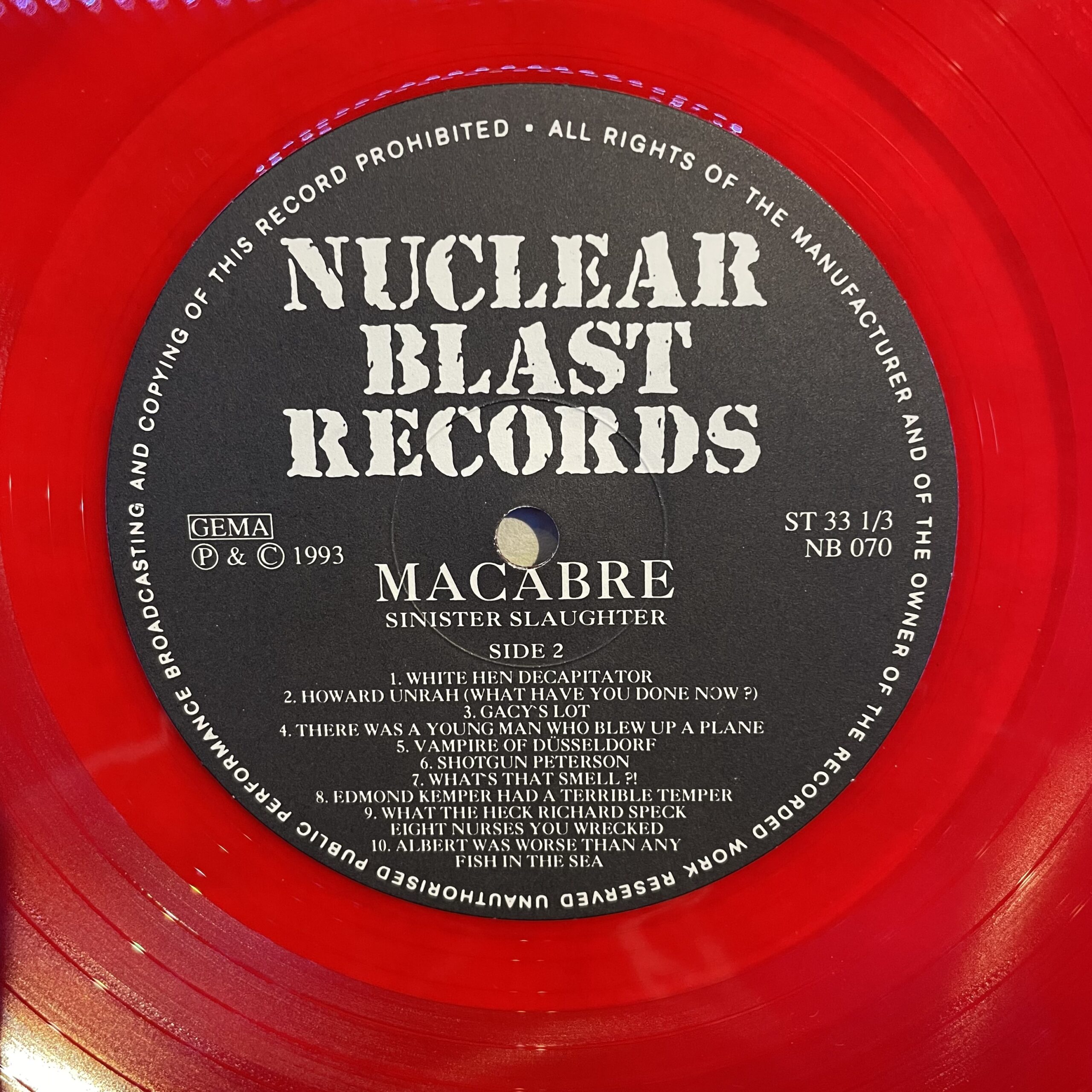 1993 German press on red translucent vinyl. This is the censored cover with NB 071 wrongly stated as the catalog number. Both vinyl and cover are in excellent condition, like new.